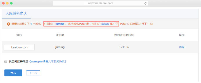 进入“域名管理”下的“域名入库”,提交所需入库名